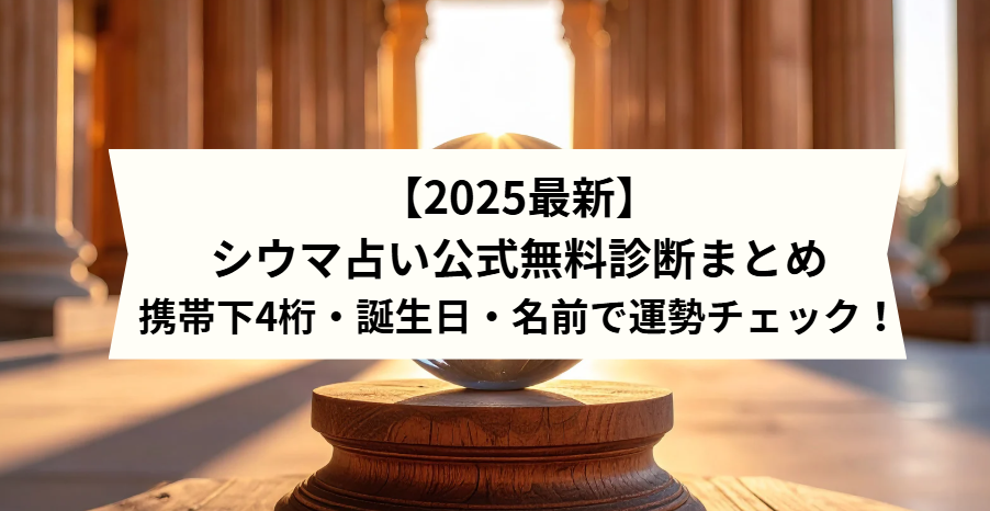 「シウマ占い公式無料」と検索したあなたは、テレビやSNSで話題の“数字占い”を無料で試してみたいと思っているのではないでしょうか。シウマさんは、携帯番号の下4桁や誕生日など、身近な数字から性格・運勢・相性を読み解く人気占い師です。 この記事では... -
