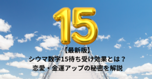 【最新版】シウマ数字15待ち受け効果とは?恋愛・金運アップの秘密を解説 数意学をもとにした占いで人気のシウマさんが提唱する「数字の持つ力」。その中でも「15」は、人気運・魅力運・良縁を象徴する特別な数字として注目されています。 スマ...